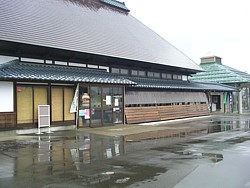 ● バイパス沿いの駅舎にある「もてなし家」は囲炉裏を囲んで座卓が並ぶ落ち着いたスペースだが早場米の産地なのに御飯物 | |