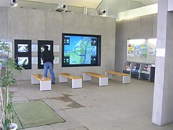 トイレを併設した別棟(軒続き)の広い休憩室兼情報コーナーは24時間利用でき、施設の内容も充実している。 | |
