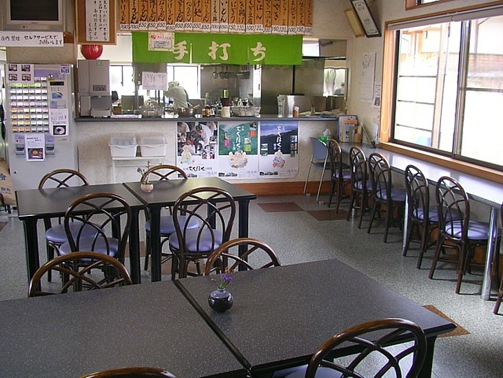 食堂は信州定番の蕎麦ではなく、手打ちうどんと名物の「おやき」がメイン。手作りの味を大事にしている。