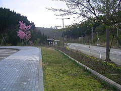 県道の東側から道の駅までの約3kmには桜並木と花の植え込みが続いている。花の季節には実に美しい。 |