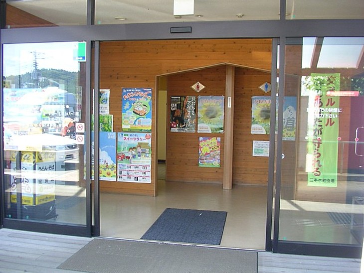 メイン駅舎入り口前のトイレ部分。営業時間外は閉鎖され休憩棟のトイレを利用することになる。