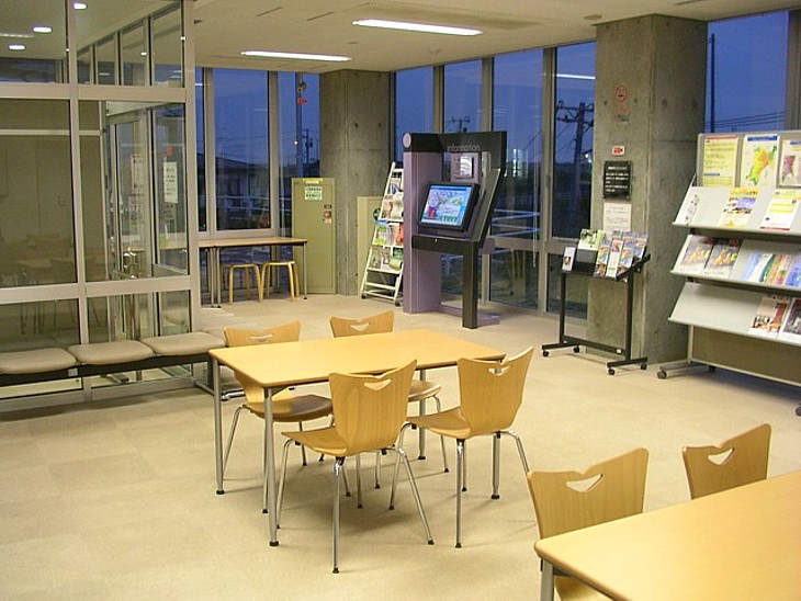 24時間利用の休憩棟は現在は夜間閉鎖。広いスペースにビジュアル施設やテーブルなどを完備している。