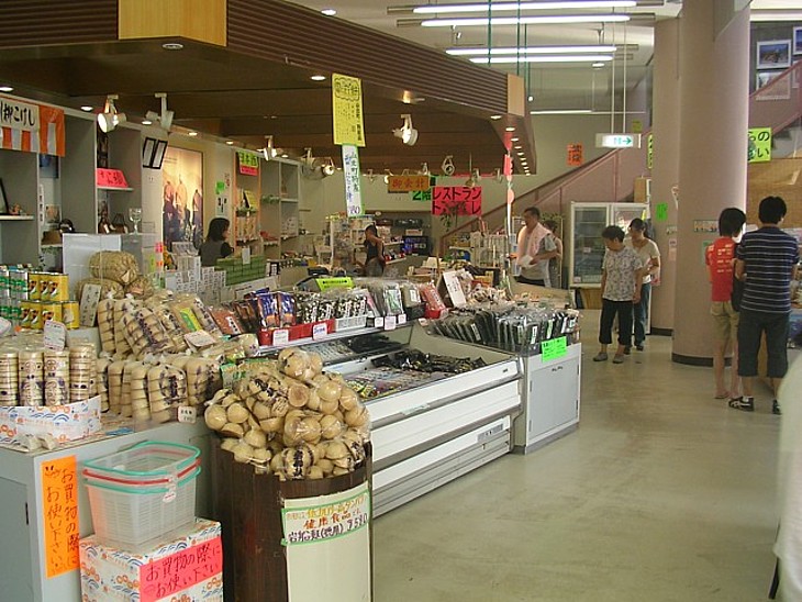物販コーナーには道の駅の雰囲気はない。広くはないが品揃えは豊富、海産物も扱っている。