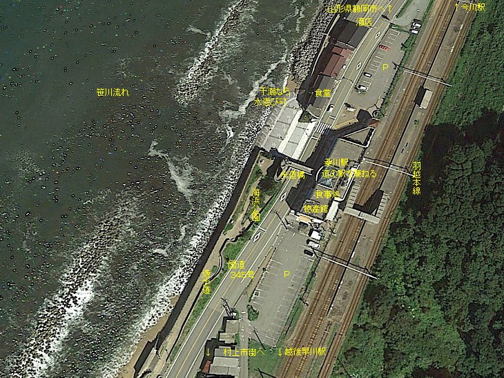 新潟県最北端の道の駅。北へ23km走れば山形県鶴岡市、日本海に沈む夕陽を見渡すには素晴らしいスポットだ。