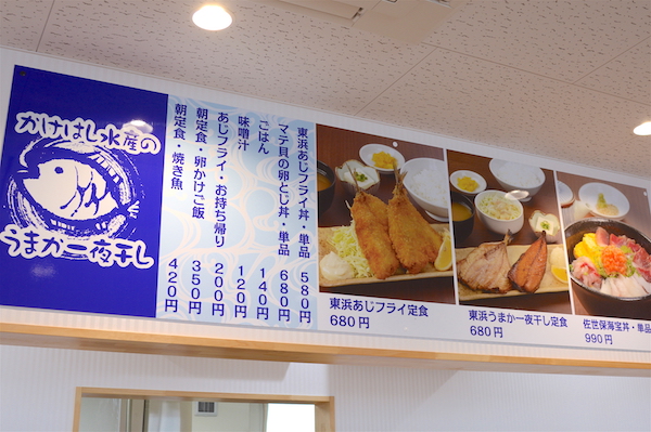 8時半〜18時半、地場産品をメインに鮮魚なども扱っている。パンや加工品・惣菜なども豊富。 |