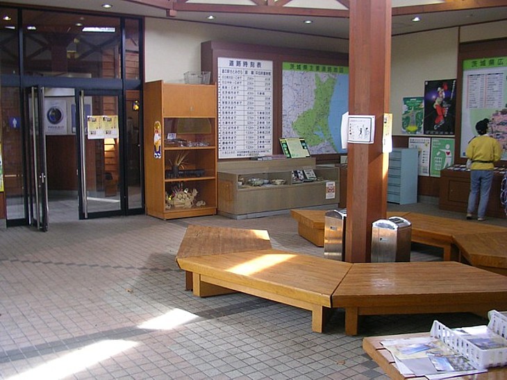 休憩室兼・情報コーナーに正面入口からの通路が合流。規模の割に広くて落ち着けるスペースだ。