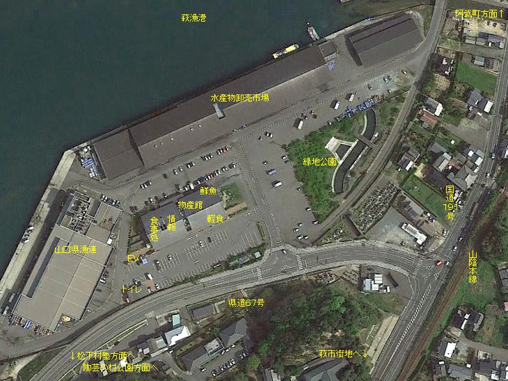 何しろ新鮮で豊富な魚介類が魅力。萩市街地から近いため休日は買い物客でかなり混雑する。