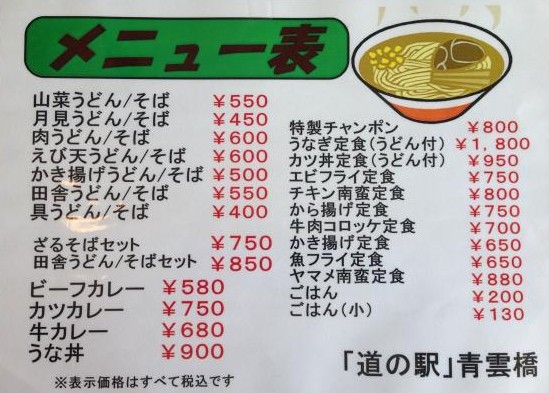 ● 2階から青雲橋を展望するレストランは10〜16時(休日の延長あり)・無休。全般に価格はリーズナブルで味も悪くない。 |