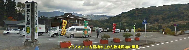 ● すぐ横の青雲橋は全長410mで水面からの高さは建設当時(1984年)は日本一の137m、県道を400mほど歩くと下から景観を |