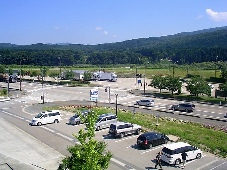 同じく展望室から国道の向い側、大型車の駐車場を。この右側に村営の「ふれあいドーム」がある。