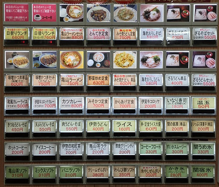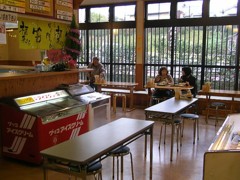 ほとんど軽食コーナーの雰囲気で、落ち着いた食事は期待できない。比較的リーズナブルな価格設定だけが取り柄で味もそれなり、薦められない。食券自販機画像を参照されたし。旧街道に和風食事処が数軒あり、時間があれば散歩を兼ねて出かけよう。 | |