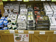 9時〜18時(休日は19時まで)、特に珍しい品物は見当たらない。売り場も狭く、農産品とその加工品や和菓子などが特産。 | |