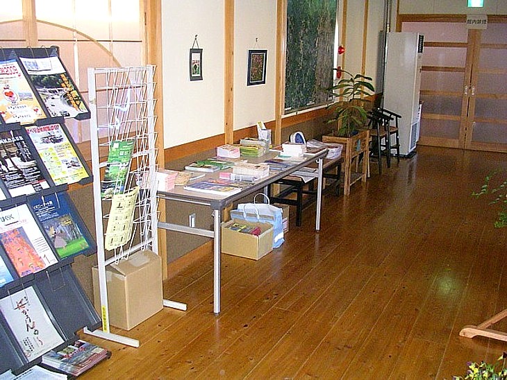 駅舎内には観光案内コーナーも設置してある。ただし無人でテーブルにパンフレットが並んでいるだけ。