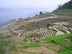 なにはともあれ、すぐ横で海に向かって傾斜する千枚田。季節によって様々な風情を味あわせてくれる。 |