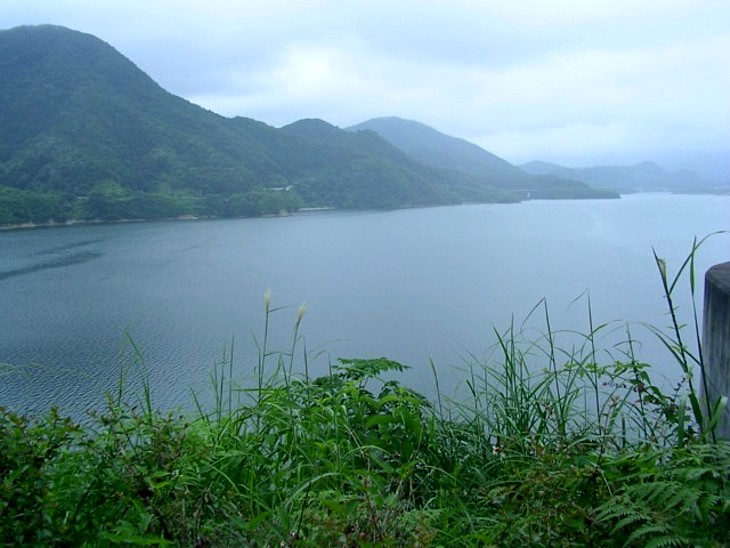 西側は七ヶ宿公園、紅葉時期の晴天なら展望は更に素晴らしい。左岸にも周回道路が通っている。