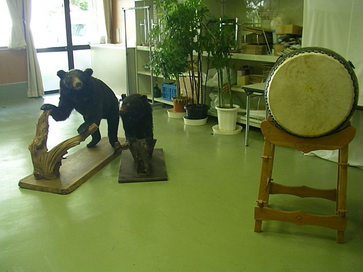 ソファの横には干乾びた感じの熊の剥製が2頭。山の中で平和に暮らしていただろうにねぇ...