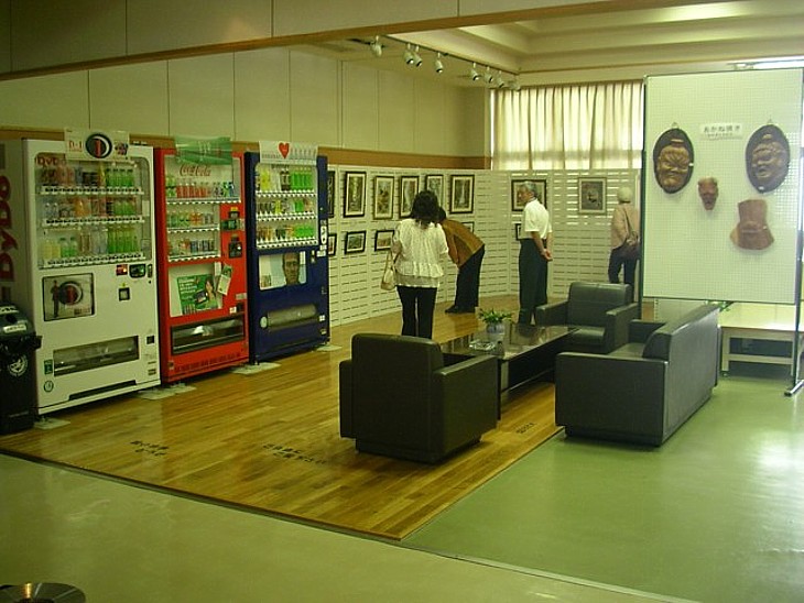 和室の向い側にはソファがあり、焼き物や絵画の展示兼・休憩所として来店客に開放されている。