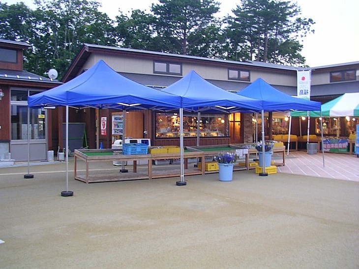 敷地が狭いため、その影響を受けた駅舎全体も狭く、屋外の仮設テントなどを物産コーナーに利用している。