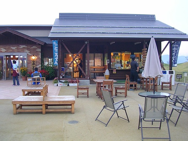 右側に食事処、暖かな季節には外のテラスも利用できる。現在はこの場所に産直野菜売場が建っている。