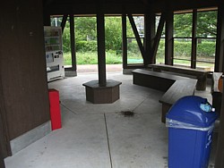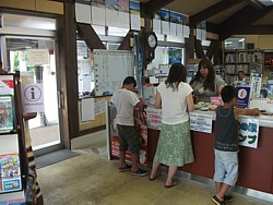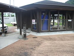 敷地の左奥の川沿い近くに24時間使えるやや貧相なログハウスがある。観光案内所は9〜17時、内部にトイレとベンチあり。 | |