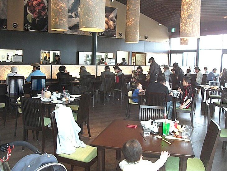 メインの食事処「源天」のお薦めは「しもつけ丼」850円、内装を見ると高そうだが実際はごく普通だ。