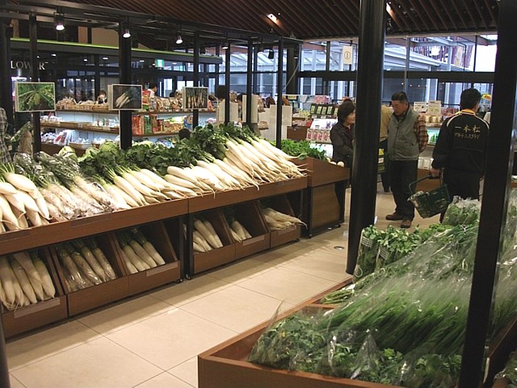 「成城石井」みたいな雰囲気の野菜売場。品数は豊富だが産直の割に価格設定は高めだった。