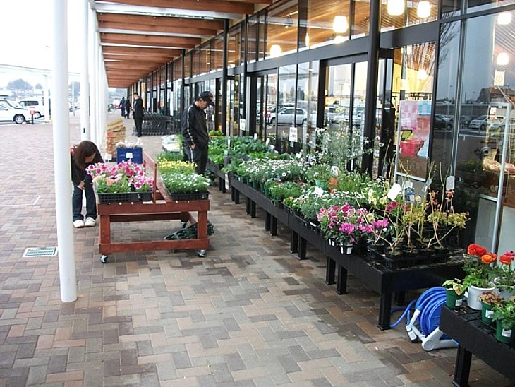 園芸売場は屋根付き休憩所に混在させ、裏庭にかけて展開すれば魅力のある売場が作れると思う。