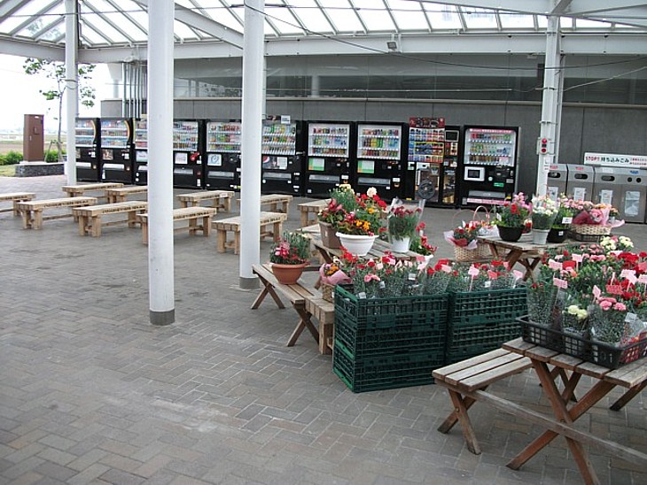 屋外休憩コーナーに置いてあったガーデンテーブルは「B級グルメコーナー」の前に移設したらしい。