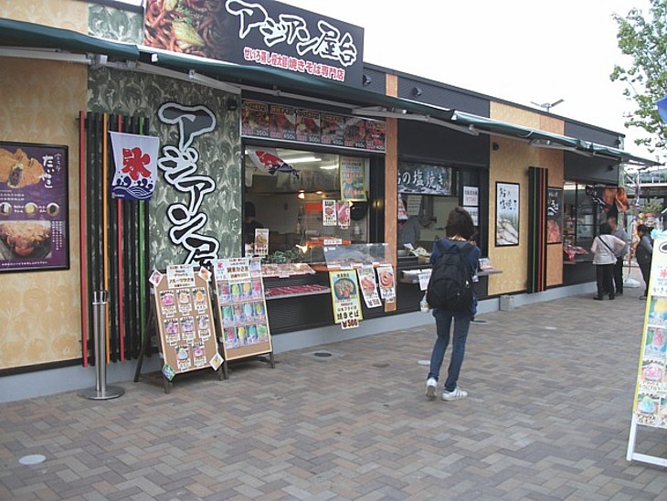 「たこ焼き富次郎」の他に「太麺焼そばのアジアン屋台」や「から揚げ」や「鮎の塩焼き」などが並ぶ。