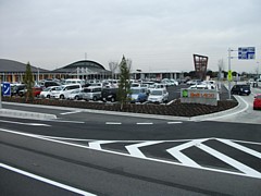 中: バイパスの上り車線からは敷地手前から側道に入る形になるため進入しやすい。下り車線は側道から立体交差を潜って駐車場に入る。