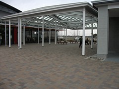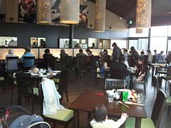 上: 休憩室前の別棟軽食施設は最初に訪問した2011年4月には建っていなかった。増床したのは2014年3月だから、機能不足に気付いて