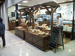 ● 駅舎内にはジェラートの伊澤いちご園と手作りパンのパンデパルク逢とスウィーツのブルージュとケーキのグリンデルベルグ。