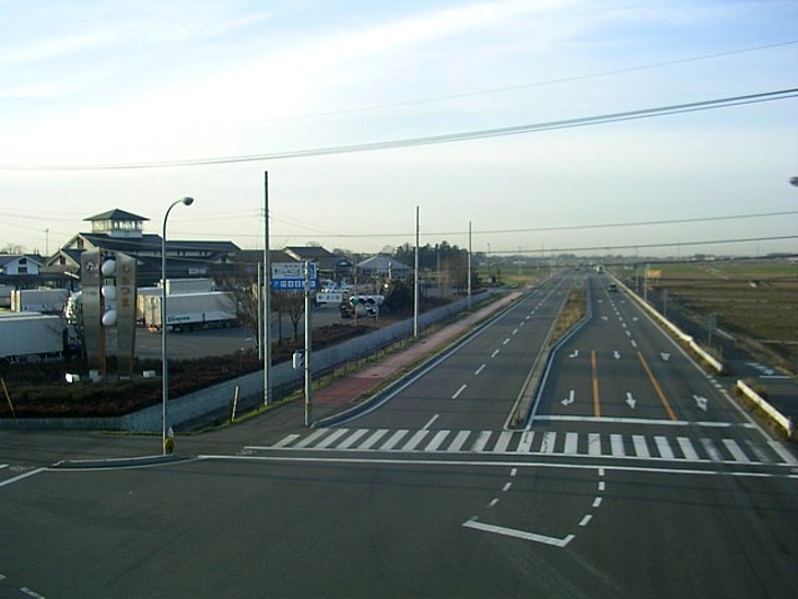 周辺には一面の農地が広がり、国道294号は筑波山西麓の関東平野を真っ直ぐ南北に走る。
