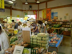 一般土産物は9時〜21時、広くはないが地場産品が充実している。価格は普通。別棟の野菜直売所は9時〜19時、農産品の種類は豊富で価格も安い。P泊する場合は2km南(駅舎の右方向)にセブンイレブン、更に1km先にイオンがある。 |