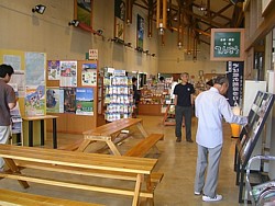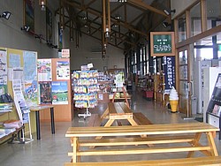 トイレ棟に広い休憩室兼・情報コーナーがある。テーブルを置いていないのが不満だが、一応ベンチや情報提供機能は満たしている。たぶん夜間は閉鎖だと思うが、確認するのを忘れた。 | |