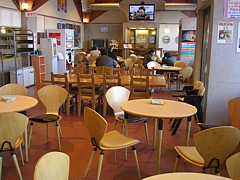 9時〜19時、一番下の2枚が軽食コーナーの画像。ハンバーガーや焼きそばもあるから軽い昼食にも利用できる。8時〜21時にはテイクアウトも利用できるが、これは軽食コーナーの機能と大差なし。 | |