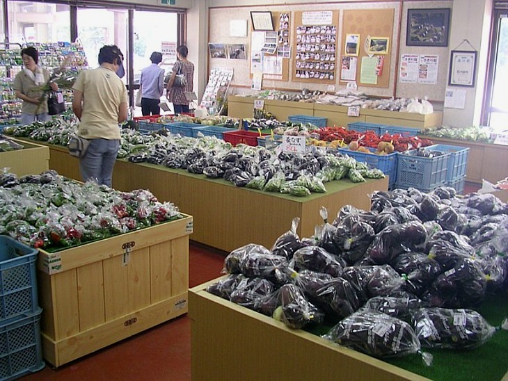 物産館の産直野菜は豊富で価格もまぁ安いと言える範囲。左端の売り場には何の意味があるんだろう。