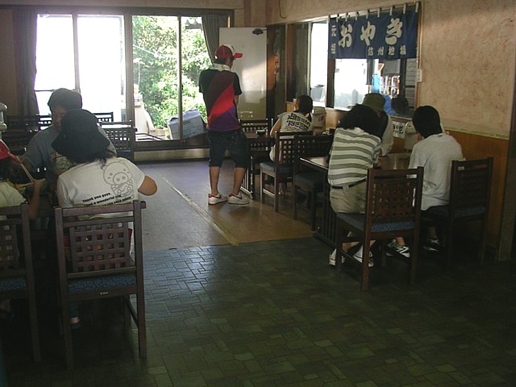 食事処奥には「おやき」のコーナーも。厨房は食事処と共通だから休憩所兼用にすれば良いのに、と思う。