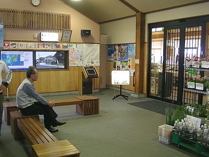 メイン駅舎入口の休憩室は24時間利用できる(売店は施錠)。設備も整っており案内機能も充実している。