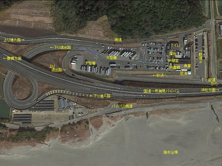 交通量の多い東海道のバイパス沿いで機能は整っているが混雑する。海水浴の時期はかなり深刻だろう。