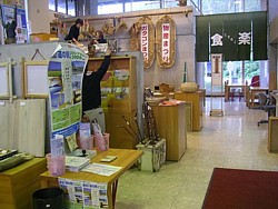 9〜18時、木の階段状の珍しいレイアウトで山村の香り高い手作り品をメインに扱う。春の山菜や秋のキノコは期待できそうだ。 | |