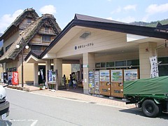 道の駅に車を置いて合掌集落散策なら、駅舎を背にして300m左、蕎麦屋(あらい)裏手の路線バス停「飛騨飯島」から合掌集落入口の「萩町バス停」まで2駅・5分・160円、もう一駅先の「せせらぎ公園」までなら190円。直接集落近くの駐車場に入るなら国道156号の庄川トンネルを抜けて左へ下る「せせらぎ公園」が最も判りやすい(500円/1日)。 | |