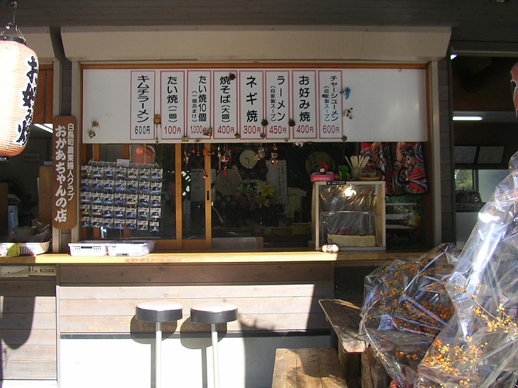 産直野菜売場と軽食堂だけの小さな駅。白鳥ICは近いが、幹線道路(国道156号)からは少し離れている。