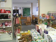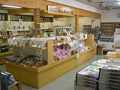 食事処が軽食を兼ねる。駅舎の右手にも団子やたこ焼き・たい焼きの店がある。 | |