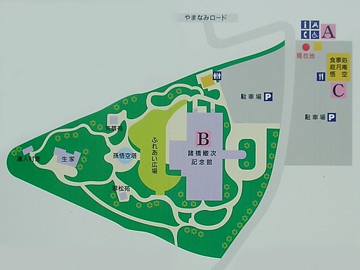 道の駅と諸橋轍次記念館(屋外は入場無料)の全体図。実際は道の駅の駐車場はもっと大きい。