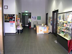 営業時間中は別棟のごく狭い案内施設が利用できる。一応給湯設備やパンフレット程度は置いてある。 | |