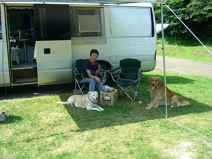 オートキャンプ場や温泉は大きな魅力だが、何となく落ち着けない。停泊中のスナップ。暑い日だった!