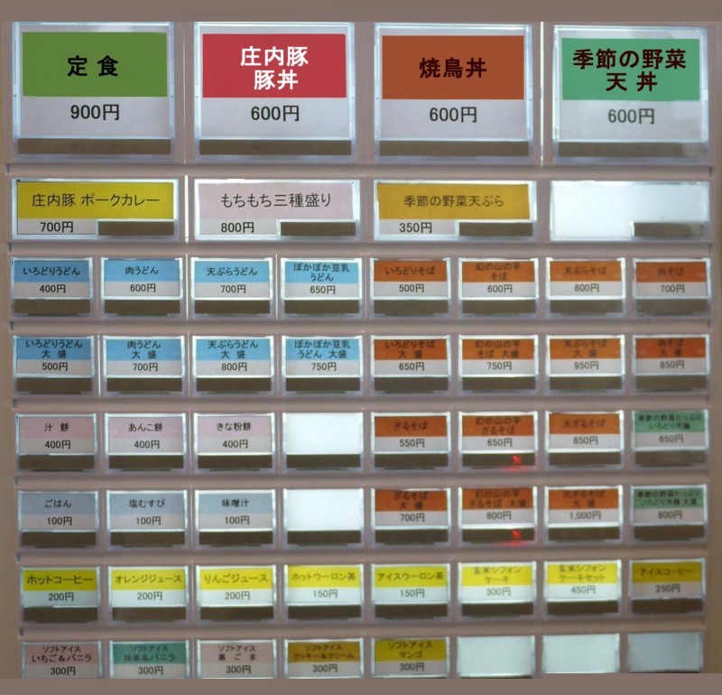 風車の見える主婦レストラン「いろどり」のランチは11〜15時・12/31〜1/3休。詳細メニューは自販機画像で。餅料理もあるよ。 | |