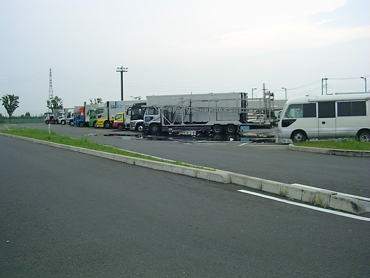 広い駐車場は大型車と普通車が完全に分離されている。P泊してもアイドリングに悩まされる心配は少ない。