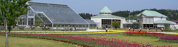 ブルーメッセの花の広場はペット禁止だが駐車場周辺の芝生や遊歩道が広いため散歩ルートには不自由しない。 | |